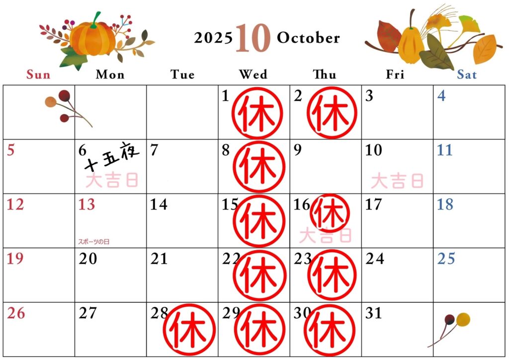 10月営業日カレンダー